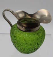 Jugendstil-Sahnekännchen, grünes Glas, Metallmontur, H-9,5cm.