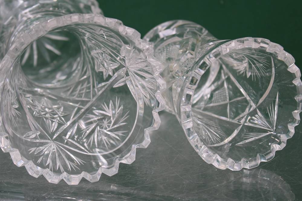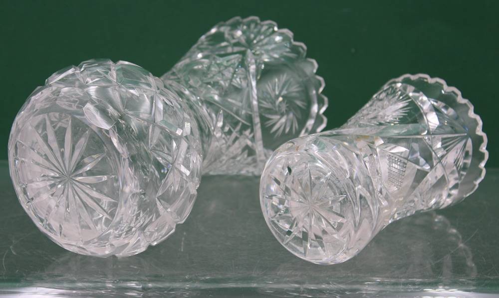 2x div. Kristall-Vasen, Schleuderstern, ca. H-20 u. 12,5cm [1]