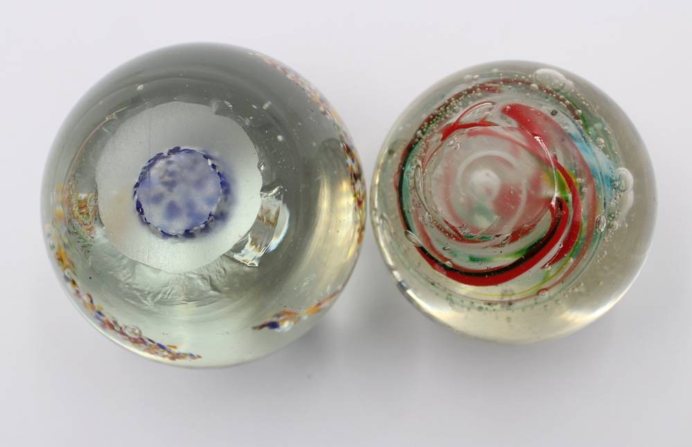2x div. Paperweights mit farbigen Einschmelzungen, ca. H-8 u. 7cm [1]
