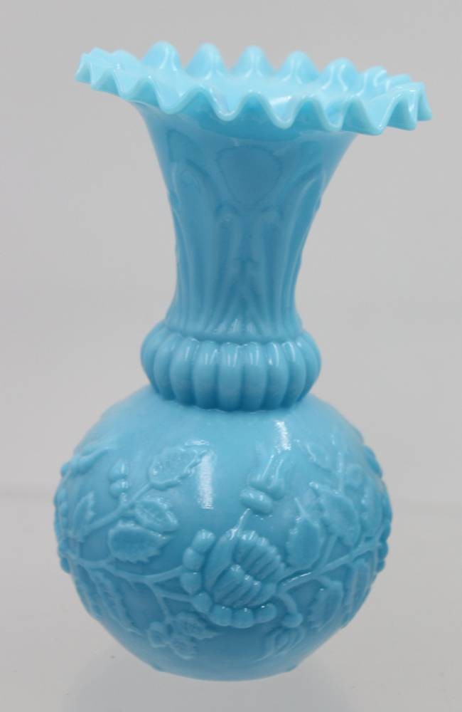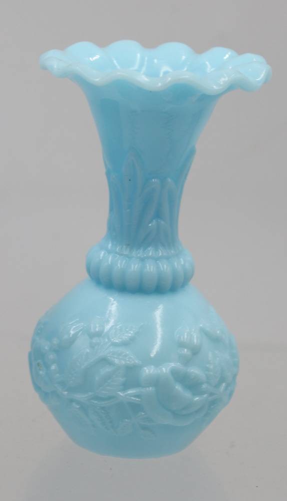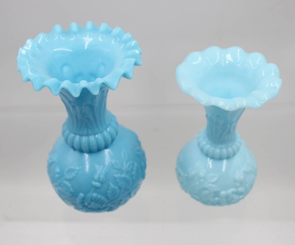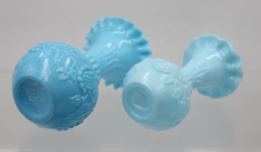 2x div. Vasen, opalines blaues Glas, älter, 14,5 u. 12,5cm [1]