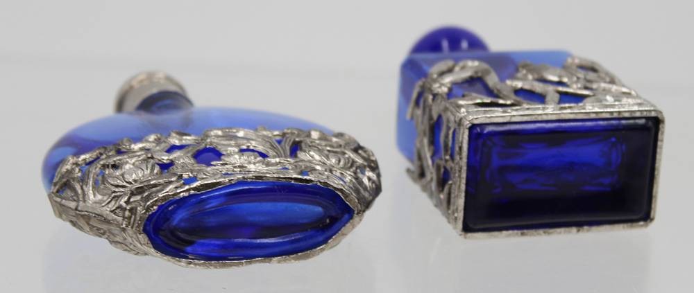2x Flacons mit Metallmonturen, blaues Glas, ca. H-9,5cm [1]