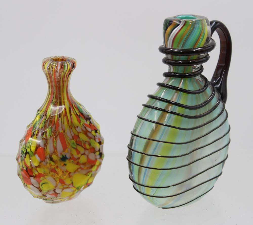 2x Kunstglas-Flaschen/Flacons, ca. H-14 u. 11cm