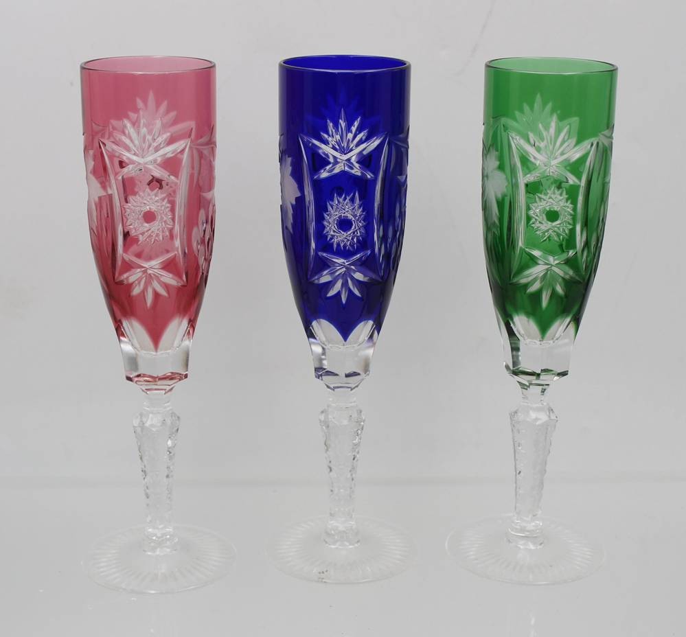 3x Buntglas-Sektflöten, Nachtmann, ca. H-21,5cm