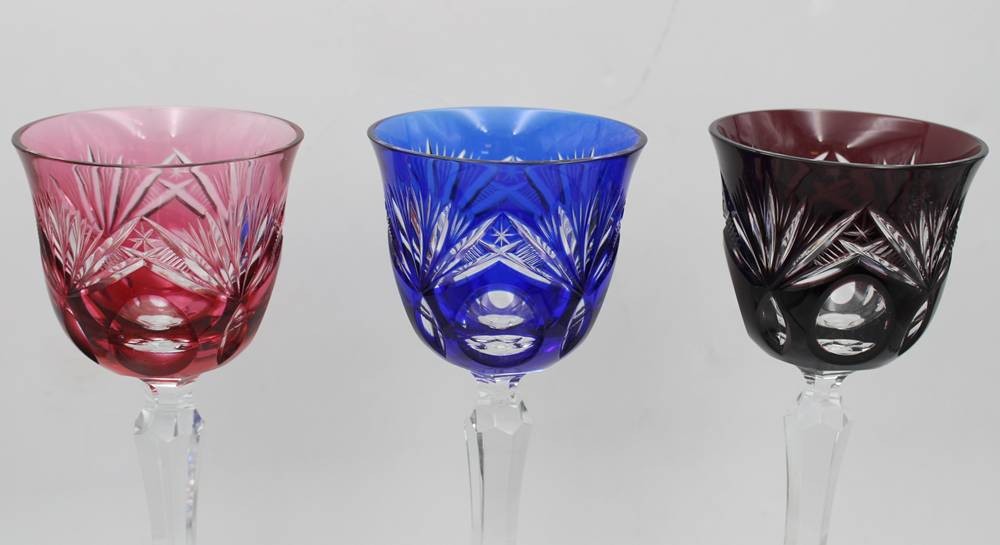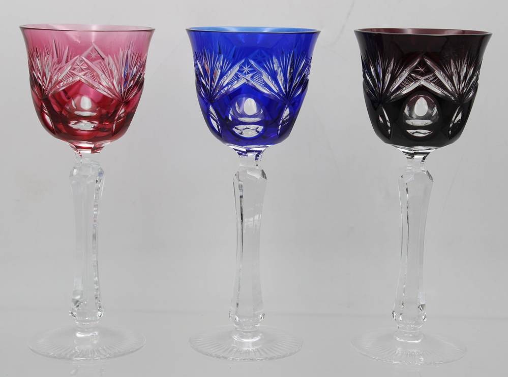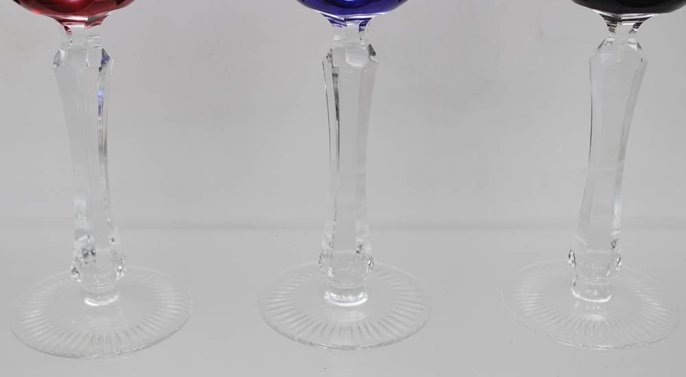 3x Buntglas-Weinrömer, wohl Nachtmann, ca. H-21cm