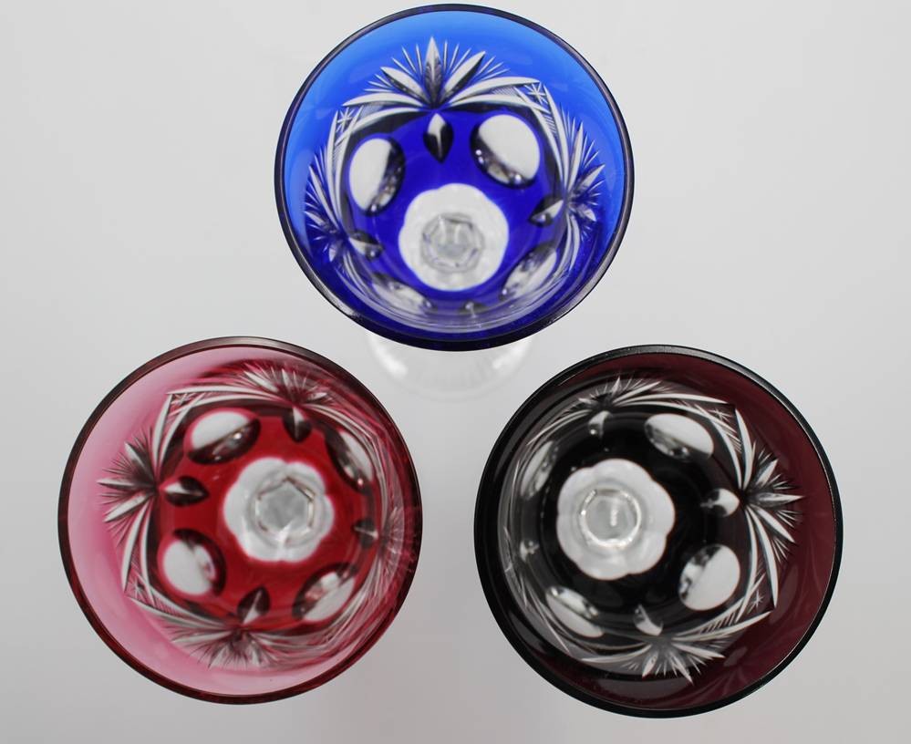3x Buntglas-Weinrömer, wohl Nachtmann, ca. H-21cm [1]