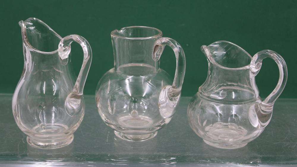3x div. ältere Sahnekännchen, farbloses Glas, beschliffen, ca. H-13,5cm [1]