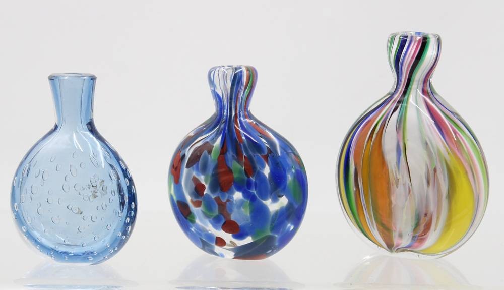 3x div. Snuffbottles, Kunstglas, ca. H-11,5cm