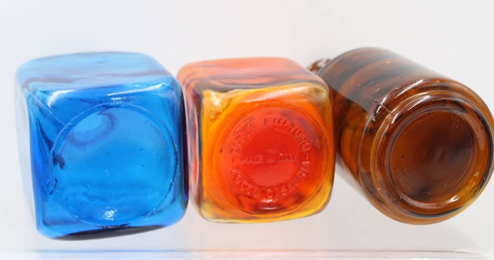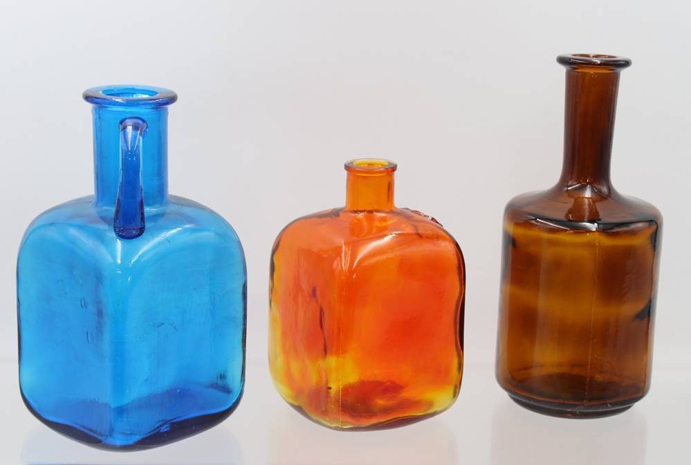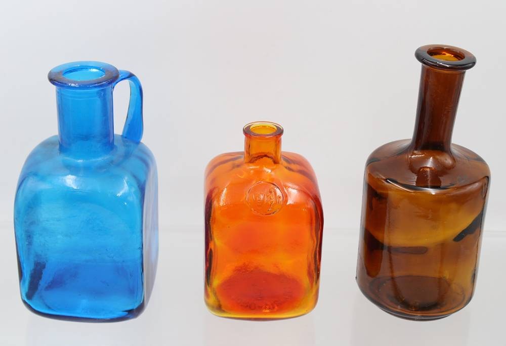 3x div. Vasen, farbiges Pressglas, älter, ca. H-22cm [1]