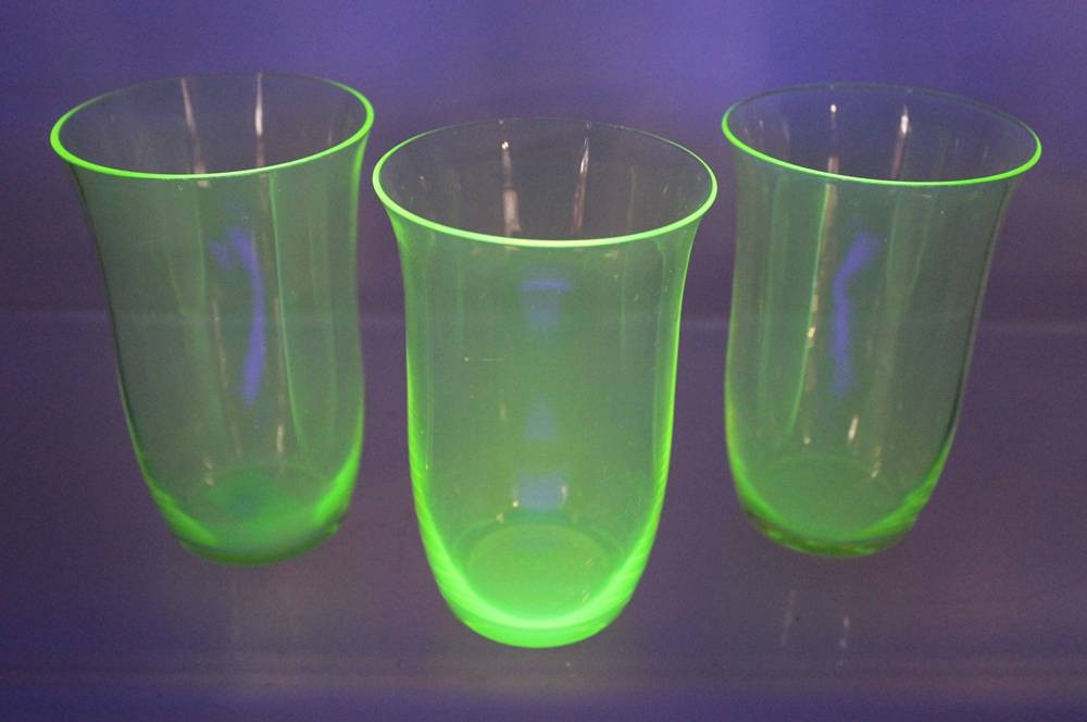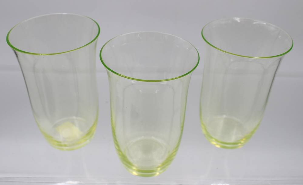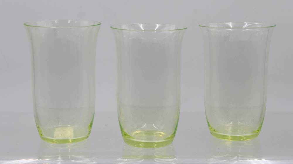 3x schlichte Gläser, Uranglas, je ca. H-11,5cm [1]