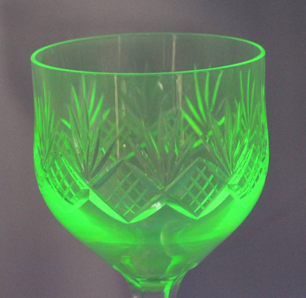 3x Weingläser, älter, Kuppa aus Uranglas, 1x an Stand Chip, ca. H-18,5cm [1]