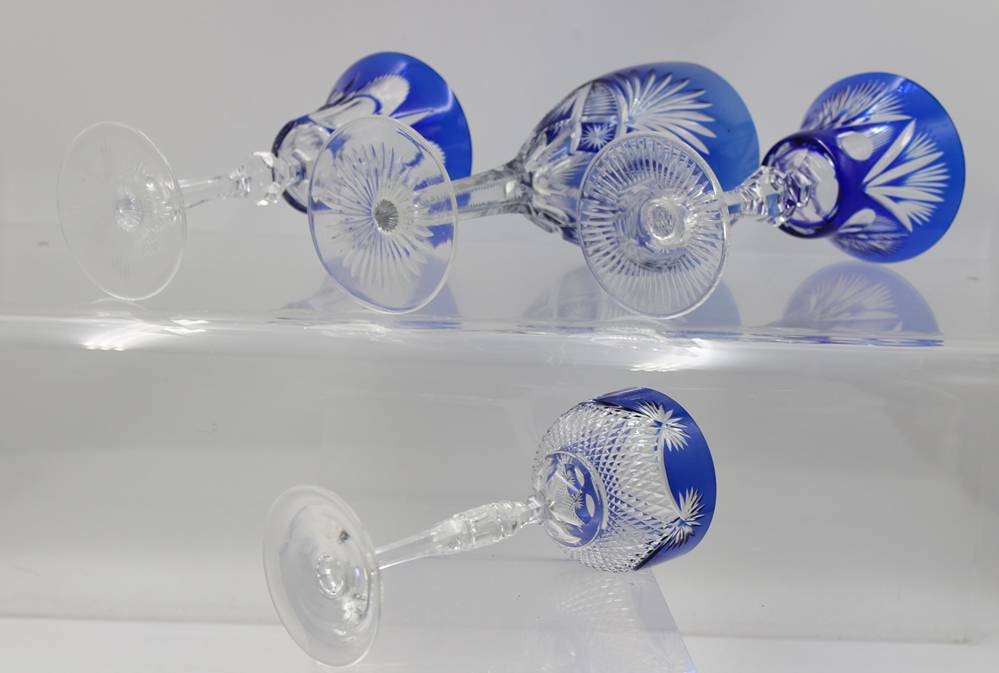4x div. gr. Überfanggläser, Kristall, blau, ca. H-25,5 bis 19cm [1]