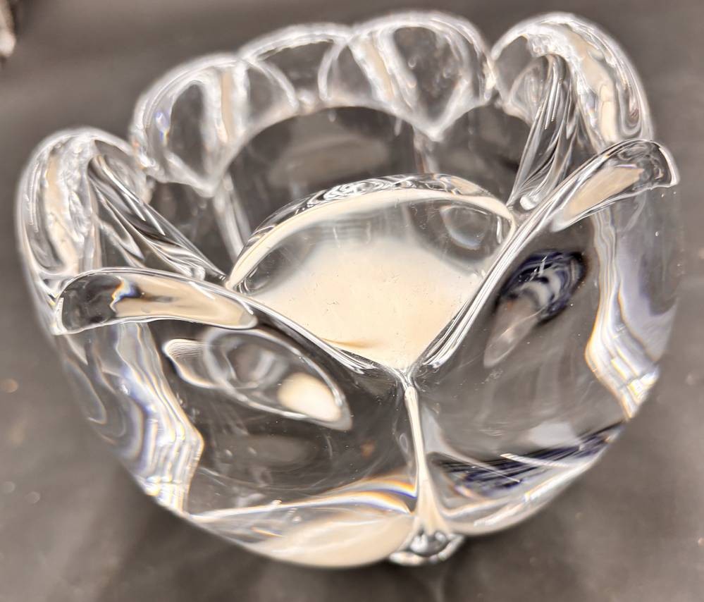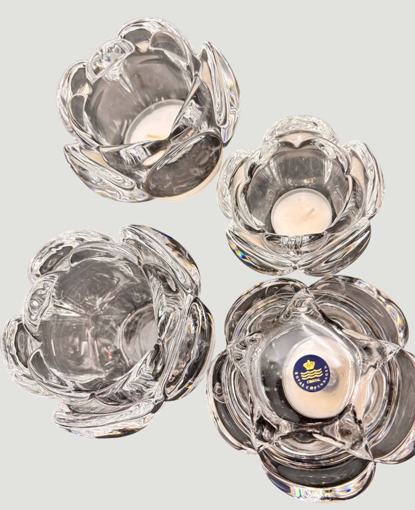 4x gr. Kerzenhalter, Kristall "Royal Copenhagen" 3x gleich gross, H-9 cm, D-12 cm, kleinere H-7 cm, D-9 cm [1]
