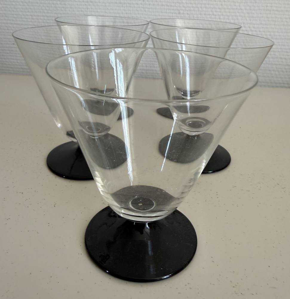 5x Art Deco Weingläser auf schwarzen Stand, Handarbeit, H-9 cm [1]