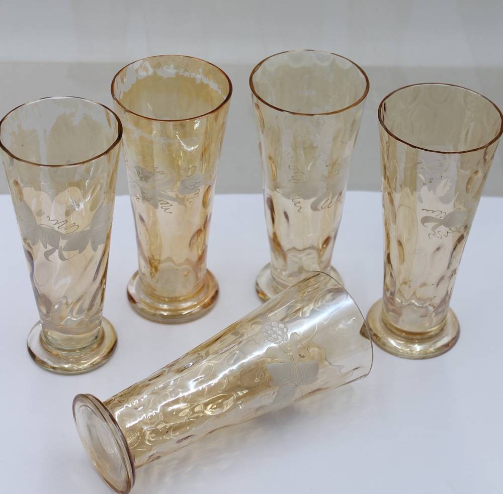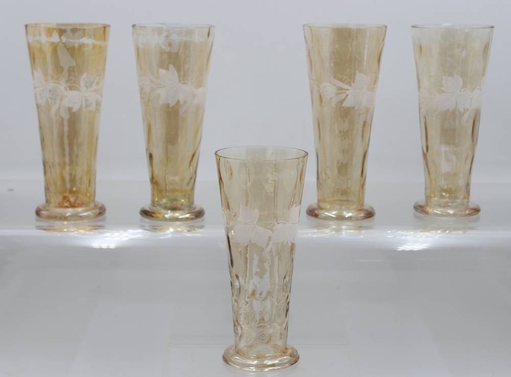 5x Biergläser, älter, Emaillemalerei, je ca. H-16,5cm [1]