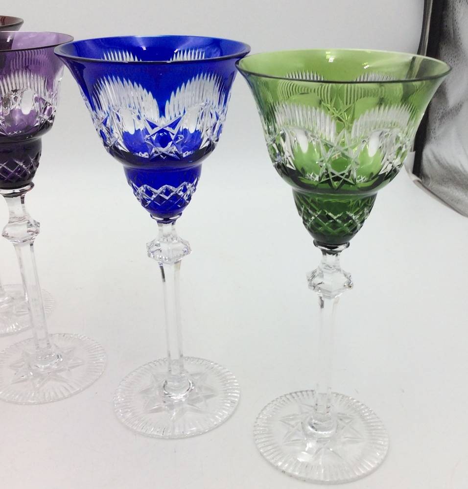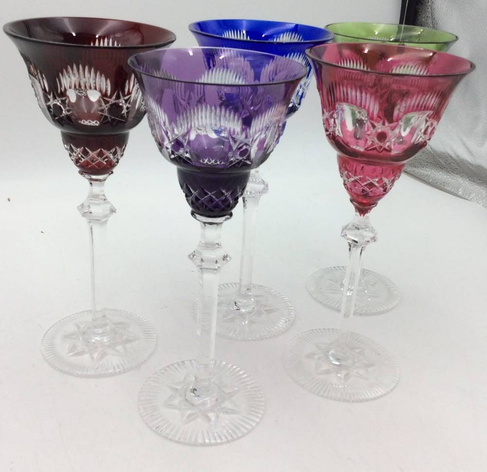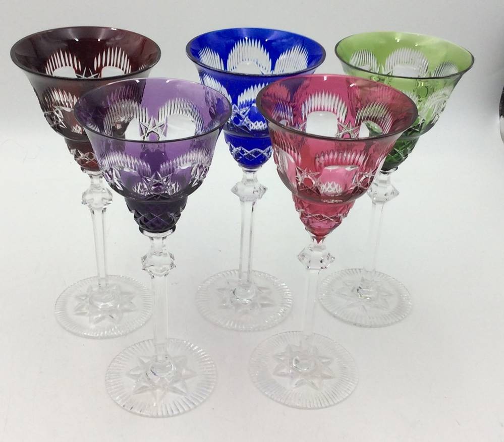 5x Buntglas-Weinrömer, beschliffen, H-21 cm