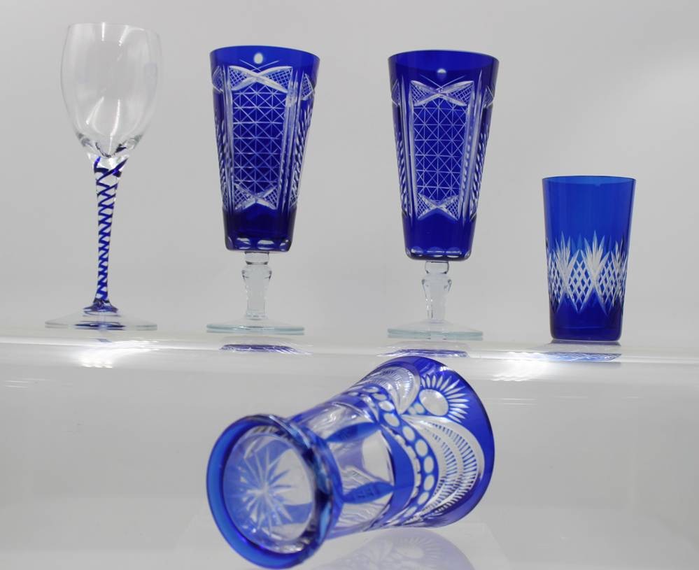 5x div. Gläser, 4x Überfangglas, blau, ca. H-17,5 bis 9,5cm [1]