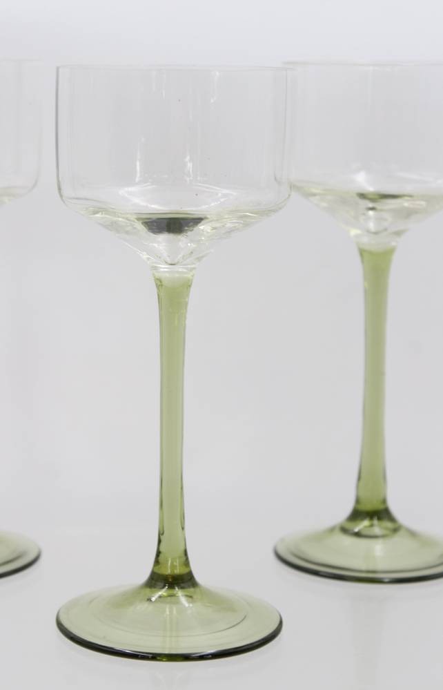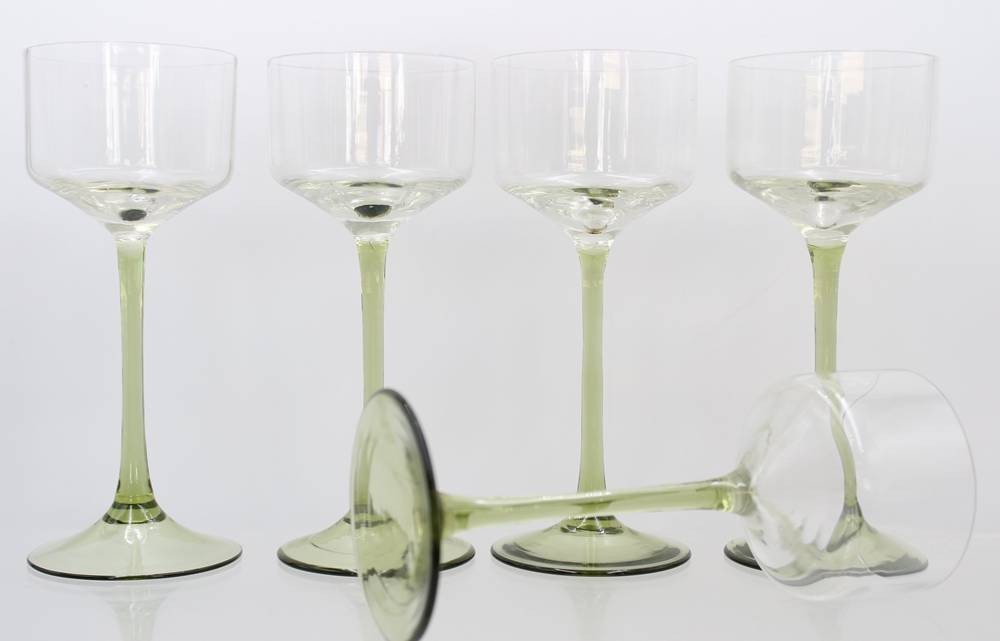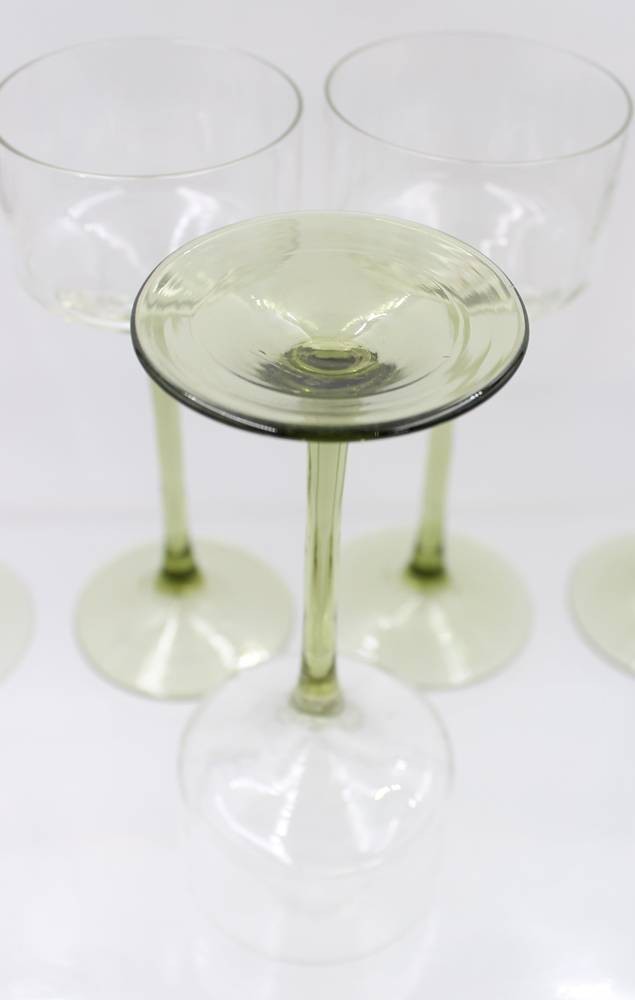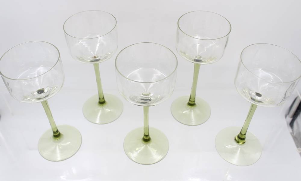 5x Weingläser mit grünem Stand, älter, je ca. H-18cm