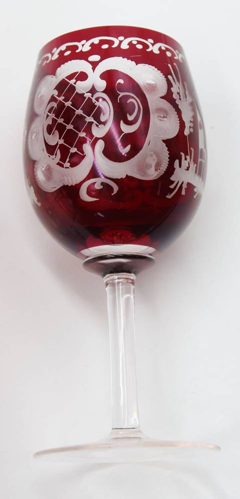 5x Weingläser, rot überfangen, Barockschliff, ca. H-14,5cm [1]