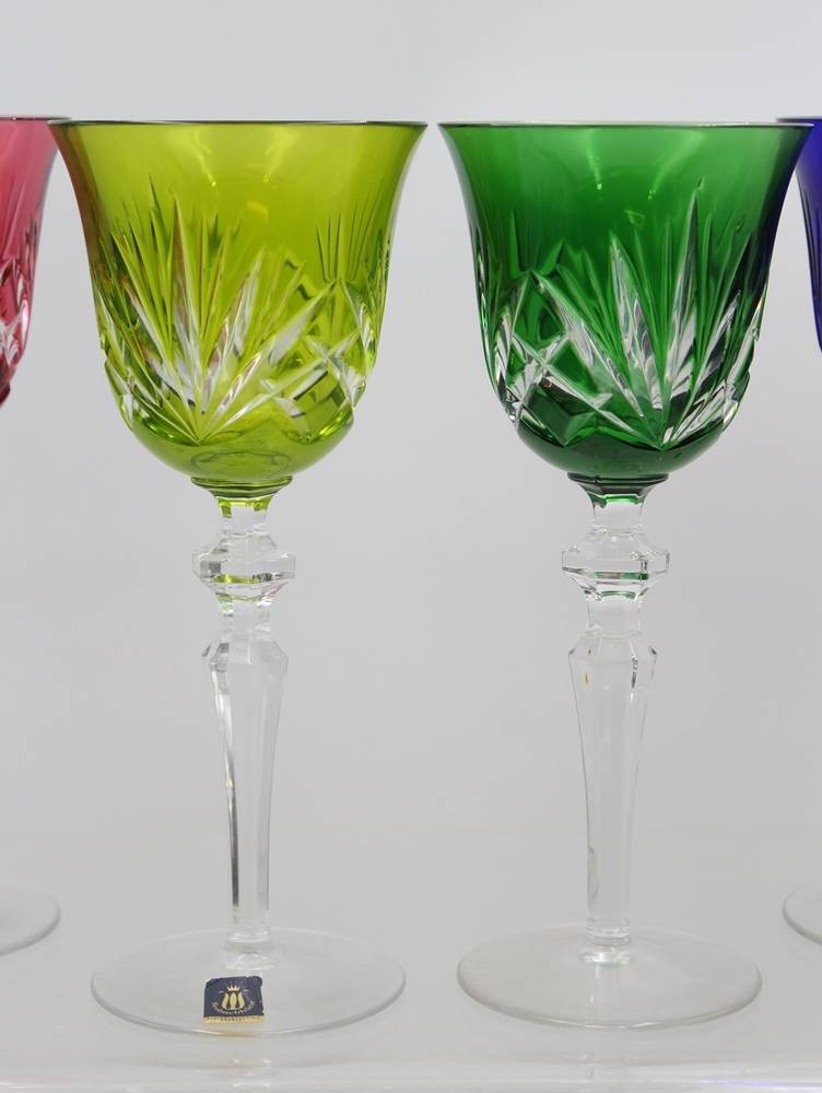 6x hohe Weingläser, Überfangglas, Seebachhütte, rote Glas mit Chip, ca. H-21cm [1]
