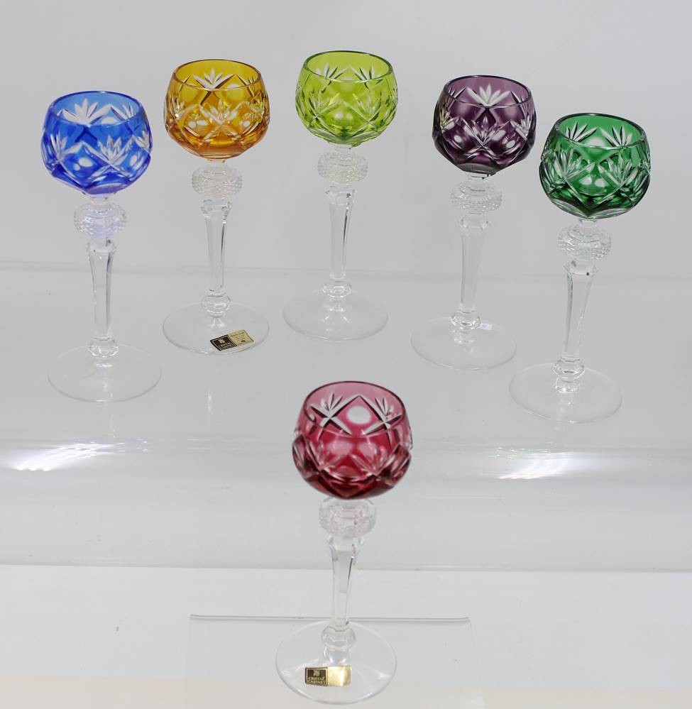 6x Likörrömer, WMF Cabinet, Buntglas, je ca. H-15,5cm [1]