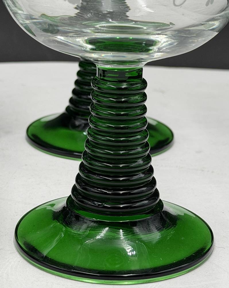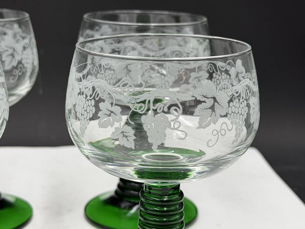 6x vintage Weinrömer, grüner Stand mit geätzten Weinlaubdekor, H-16 cm [1]