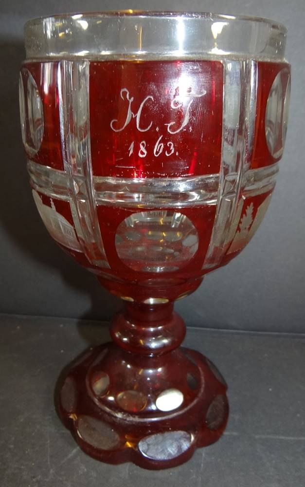 altes Bäderglas, Böhmen, dat. 1863, guter Zustand, H-15,5 cm [1]