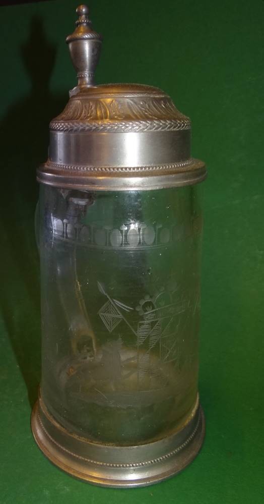 altes Bierglas mit Zinndeckel, Wappen mit Löwen als Schildhalter, H-21 cm [1]
