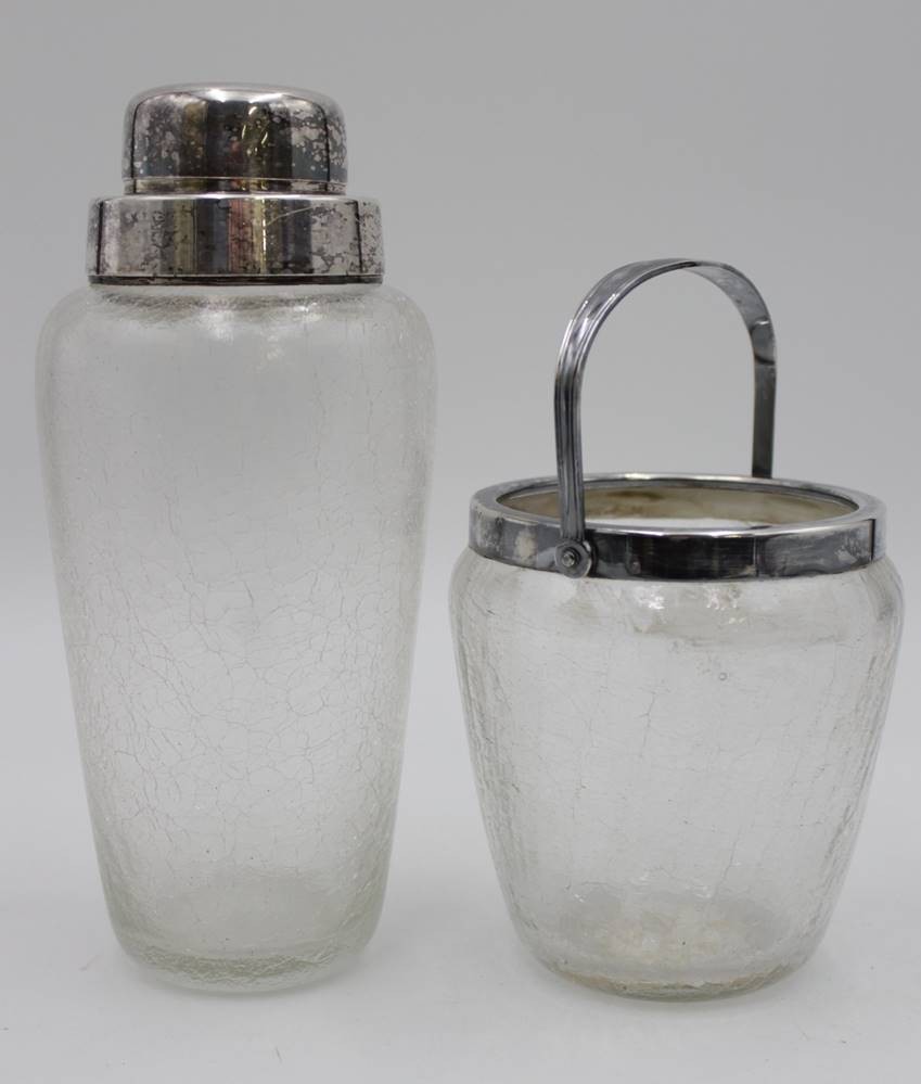 Barshaker und Eisbehälter, Eisglas mit versilberten Monturen diese WMF, Shaker H-21cm. [1]
