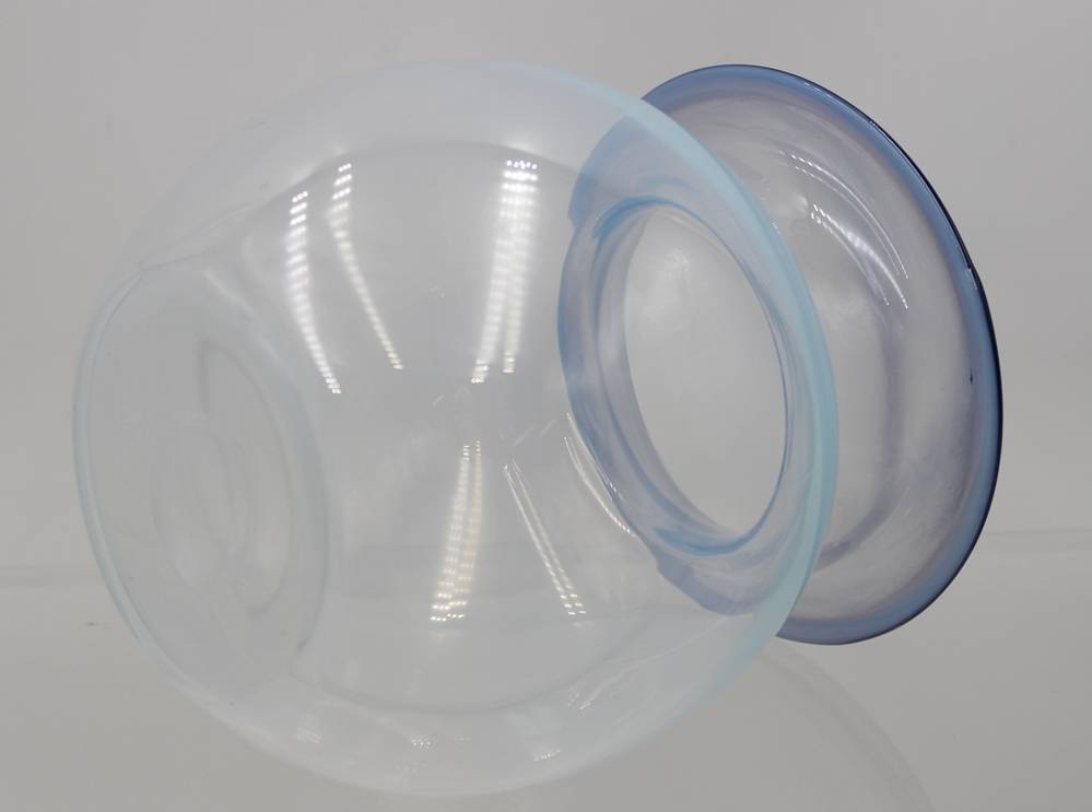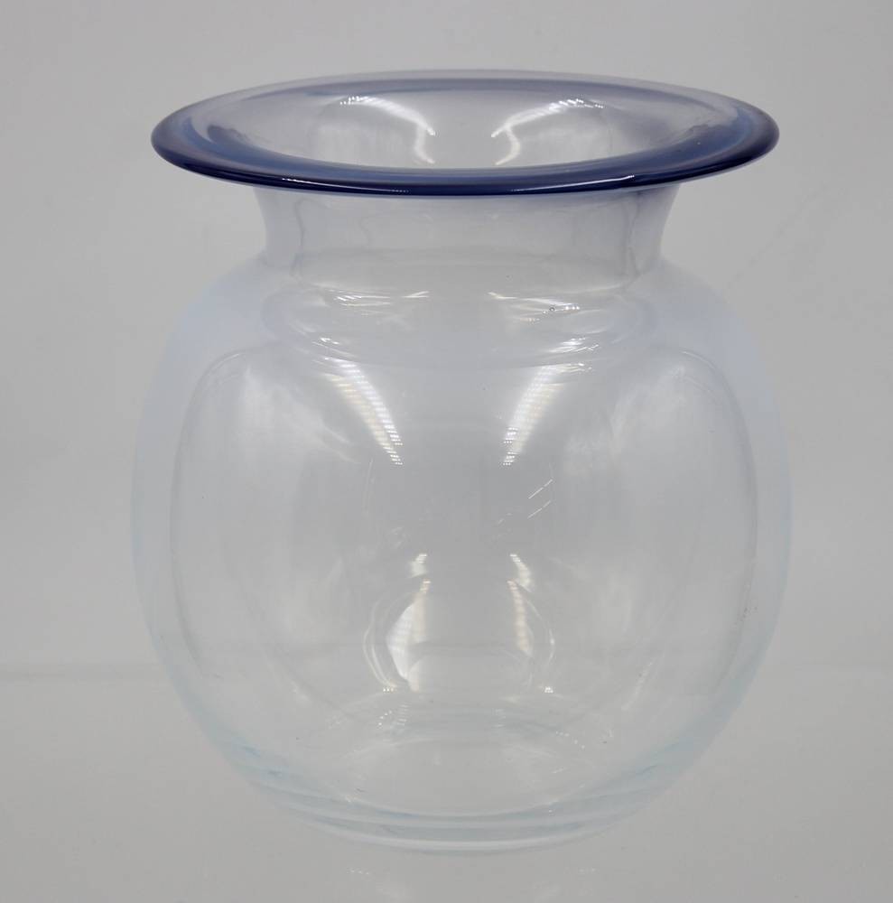bauchige Vase, signiert Eisch, blauer Rand, ca. H-17cm [1]