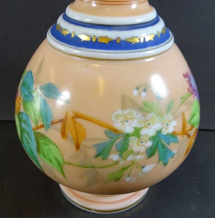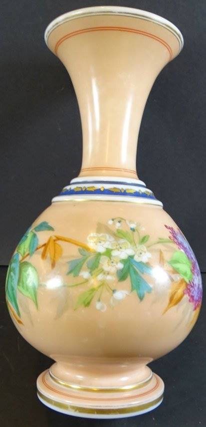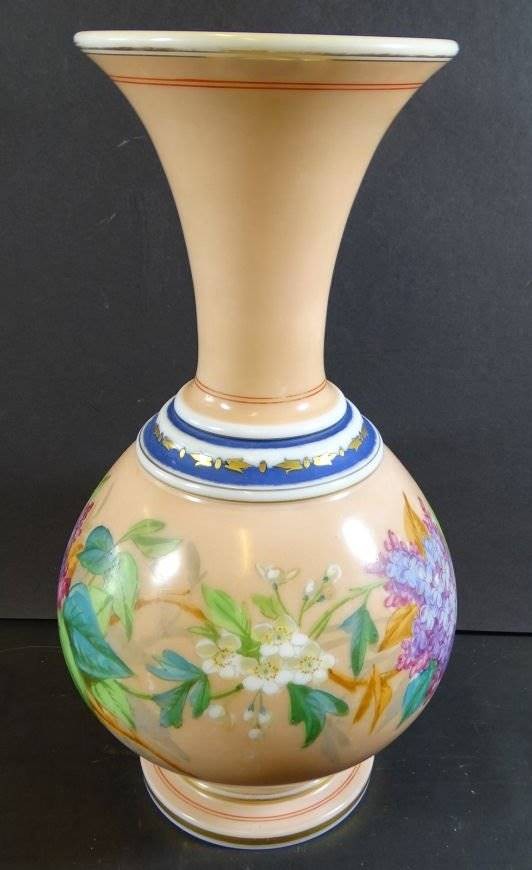 Biedermeier-Vase, Überfangglas mit floraler Bemalung, H-30 cm, leichte Altersspuren [1]