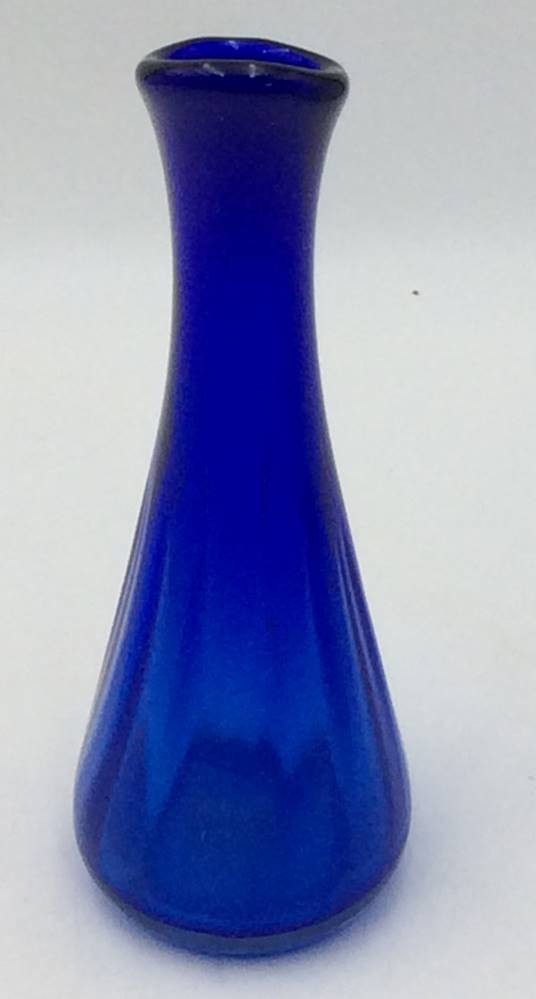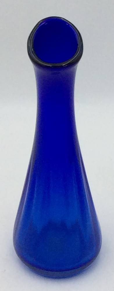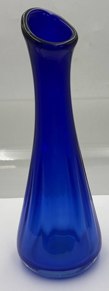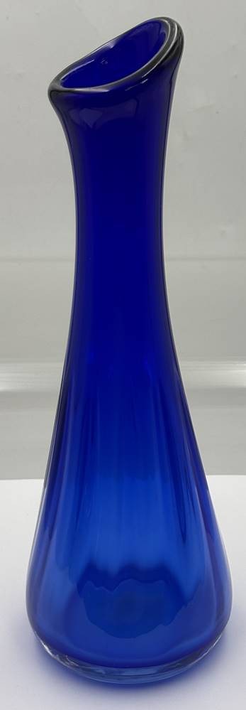 blaue Glasvase mit abgeschrägter Öffnung, ausgeschliffener Abriss, Handarbeit, H-30 cm [1]
