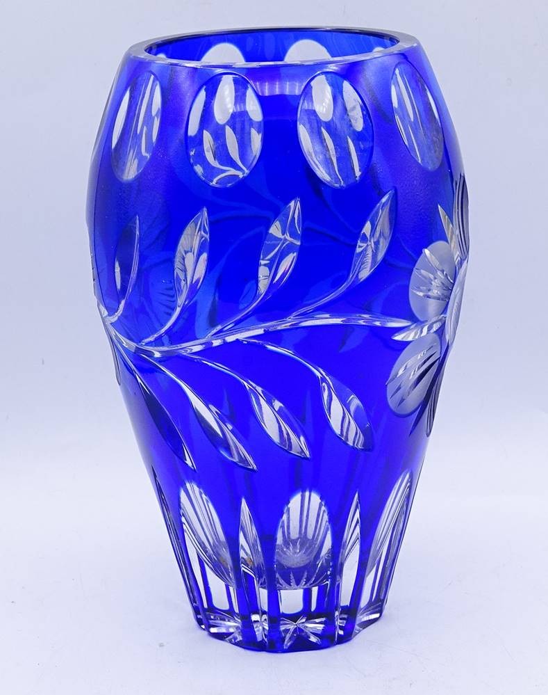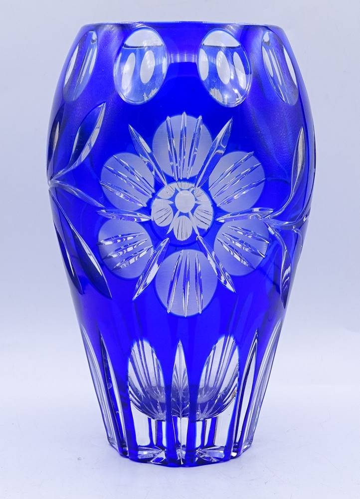 blaue Kristall Glas Vase, H. 20,5cm [1]