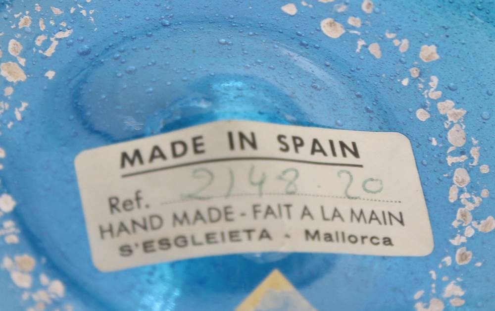 blaues Kunstglasvase, Made in Spain, ca. H-18cm [1]