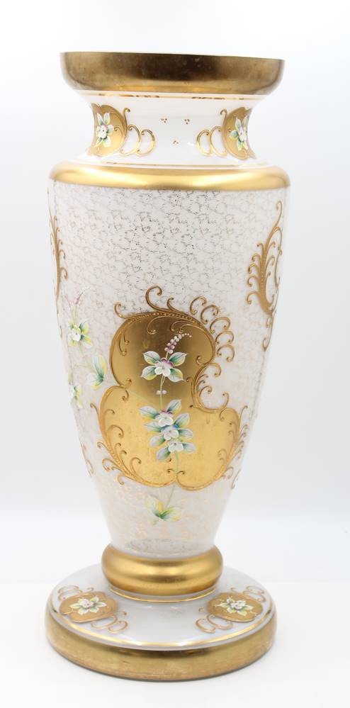 Bodenvase, Milchglas mit aufwendiger Emaillemalerei, wohl Tschechien, ca. H-60cm [1]