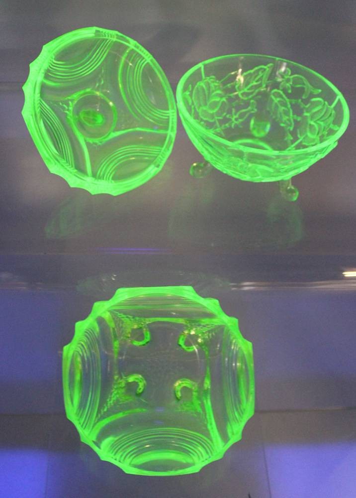 Deckeldose und Schale, Urangals, älter, Dose H-13cm ca. D-12cm, Schale ca. H-6cm D-12cm [1]