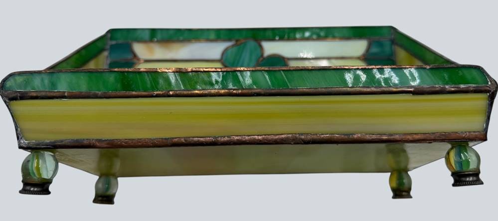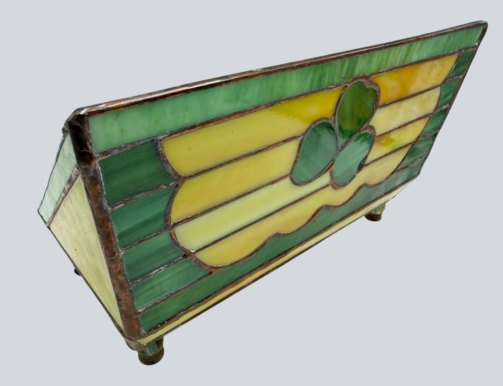 dekorative Briefablageschale oder ähnliches, Buntglas mit Kupfer verlötet, H-15 cm, 25x11 cm [1]
