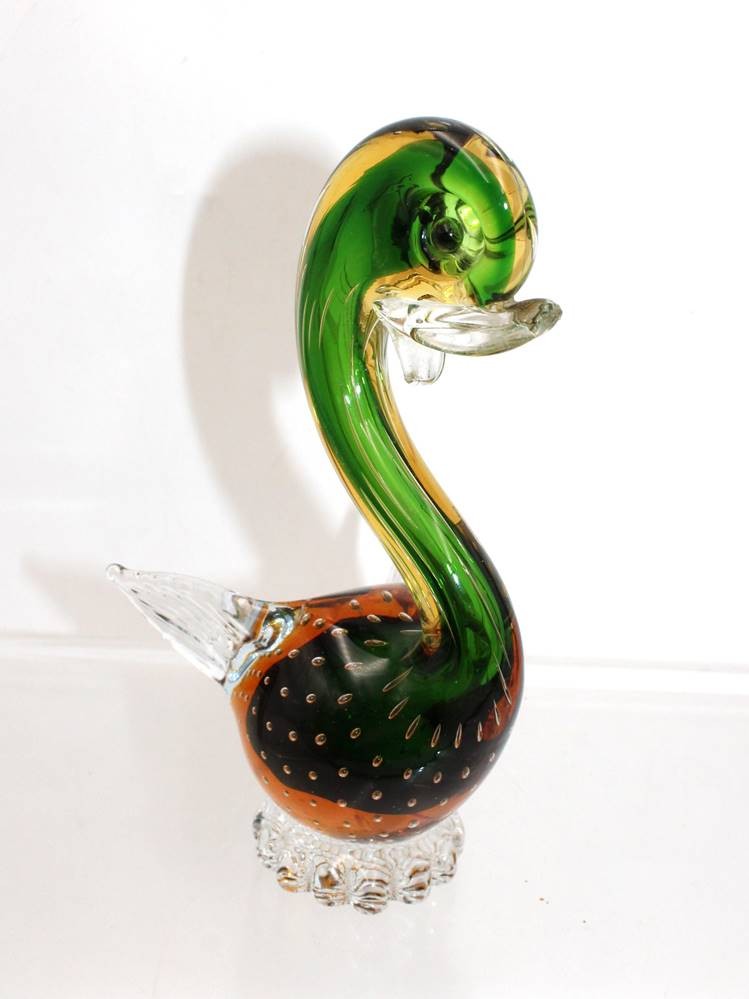 Ente, Murano, 3farbig, orig. Etikett, 70/80er Jahre, ca. H-18,5cm [1]