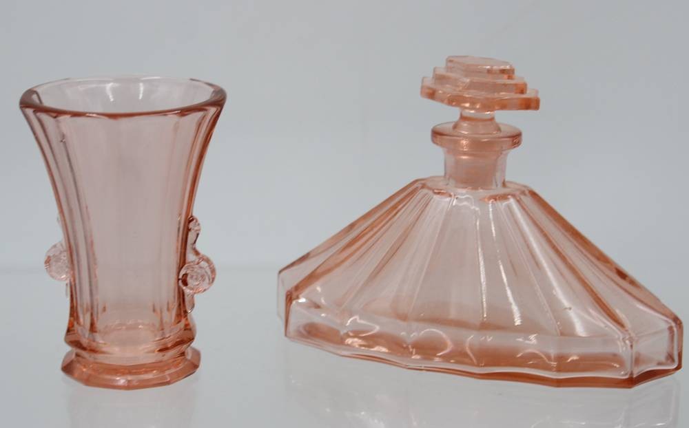 Flacon und kl. Vase, rosafarben, wohl Frankreich, ca. H-9cm [1]