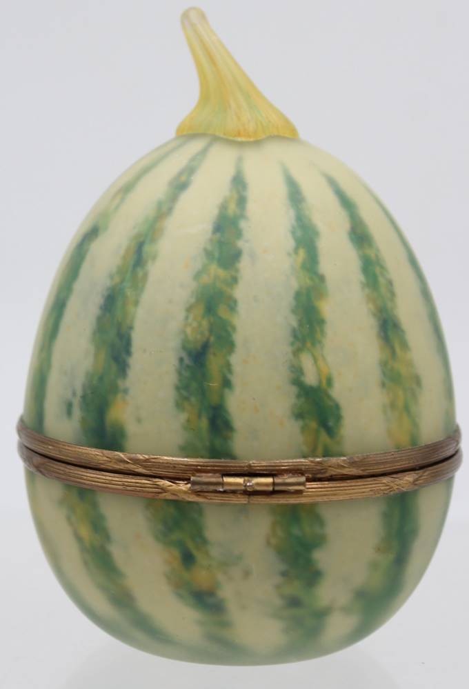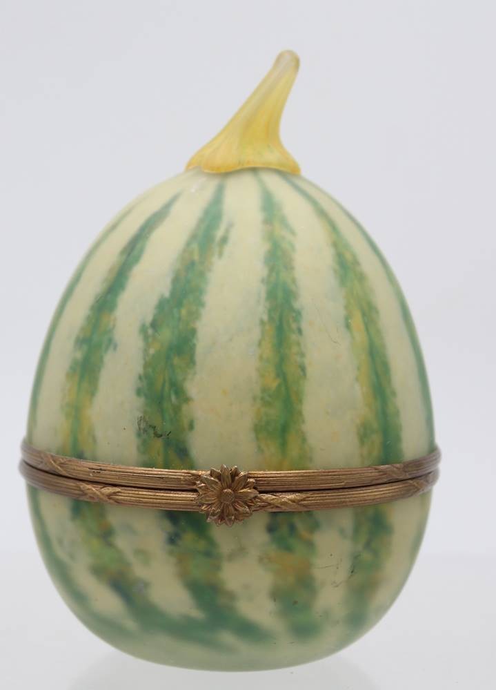 Glas Utensilo in Birnenform, signiert, H-12 cm