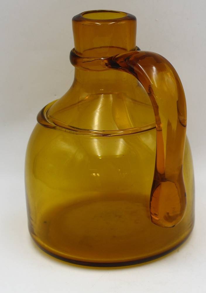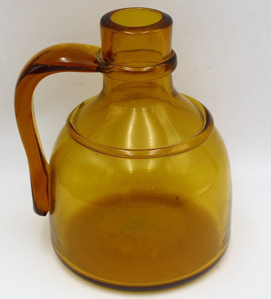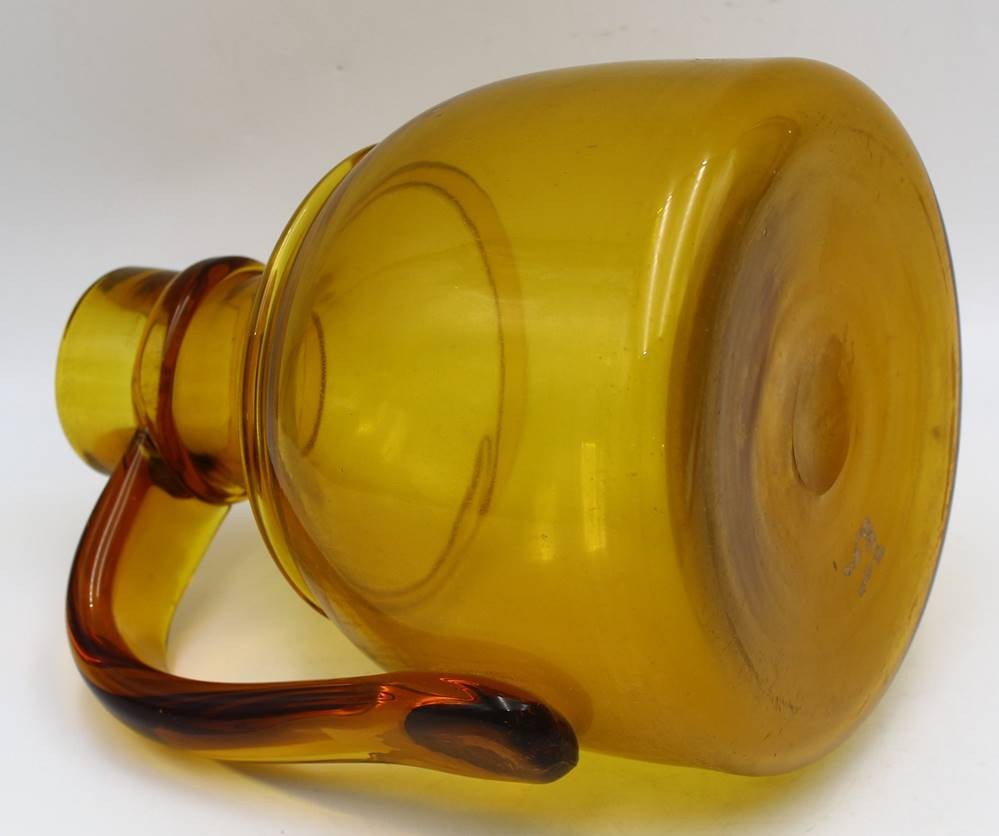 gr. bbernsteinfarbene Henkelvase, ausgeschliffener Abriss, Handarbeit, H-21 cm, B-21 cm [1]