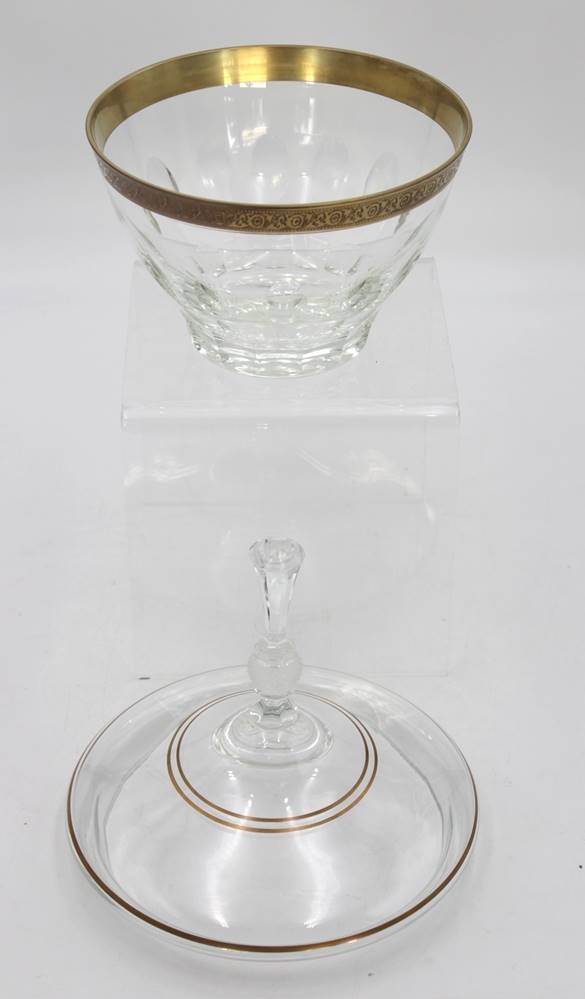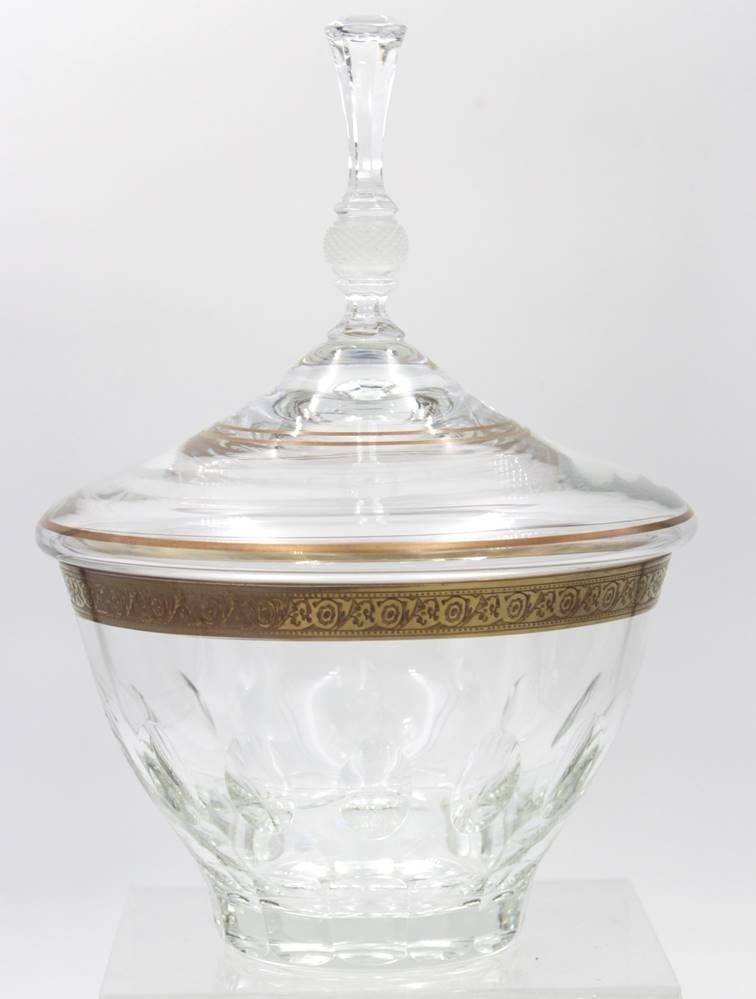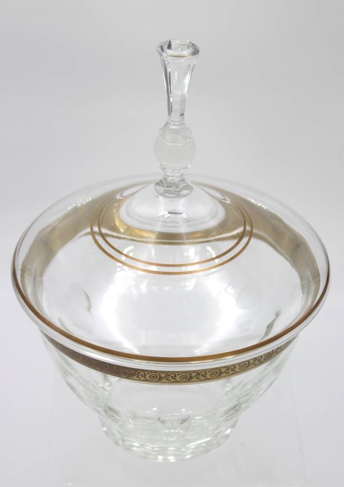 gr. Bonbonniere, Kristall, beschliffen, Goldrand, ca. H-25,5cm D-17cm [1]