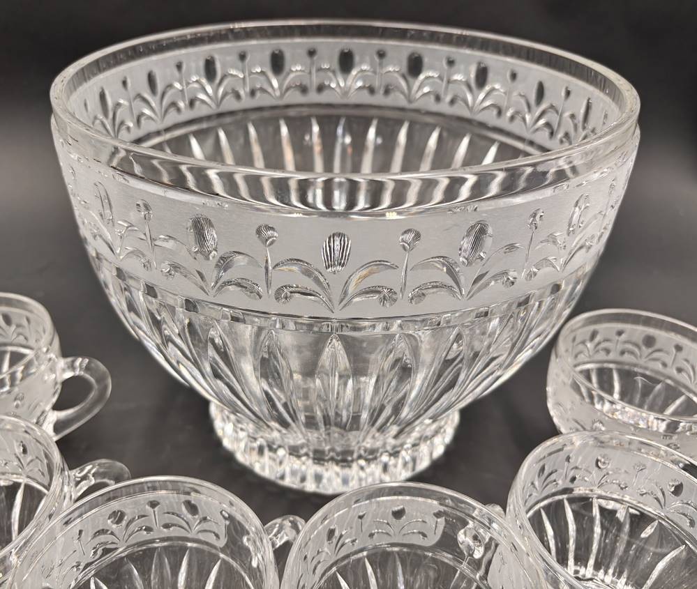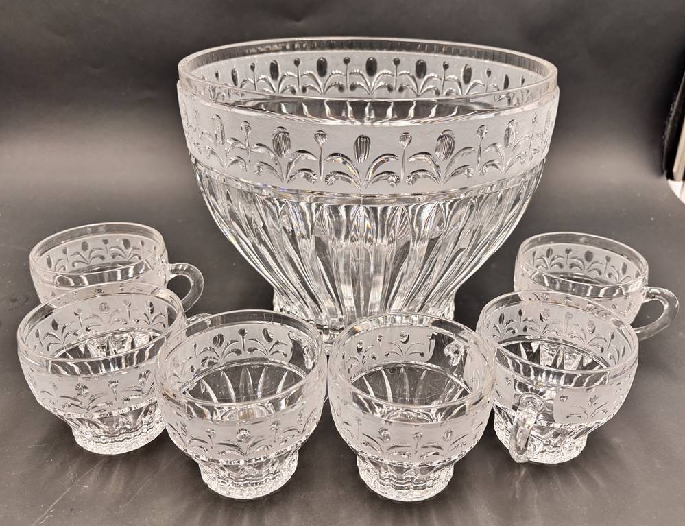 gr. Bowlenschale mit 6 Bechern "Anna-Hütte" schweres Kristall mit Schliff, H-18,5 cm, D-23 cm, Becher H-ca. 8 cm [1]