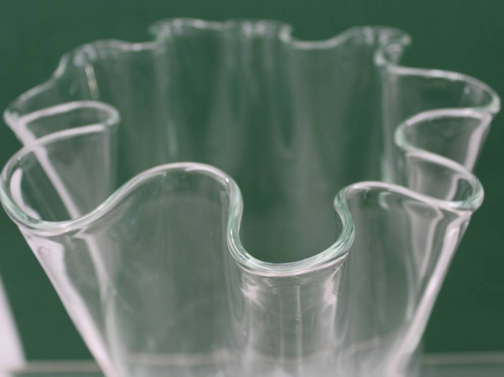 gr. Glasvase mit geschweiften Rand, H-23 cm, D-21 cm [1]