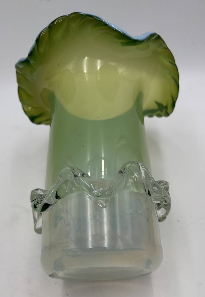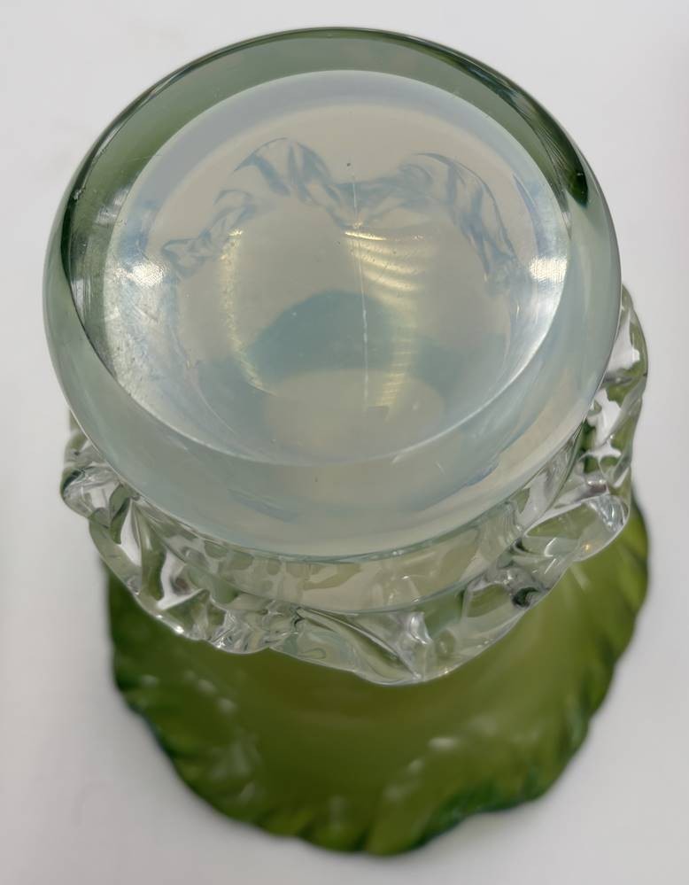 gr. Kunstglas-Vase, grün/klar, H-18 cm, oben D-15 cm [1]