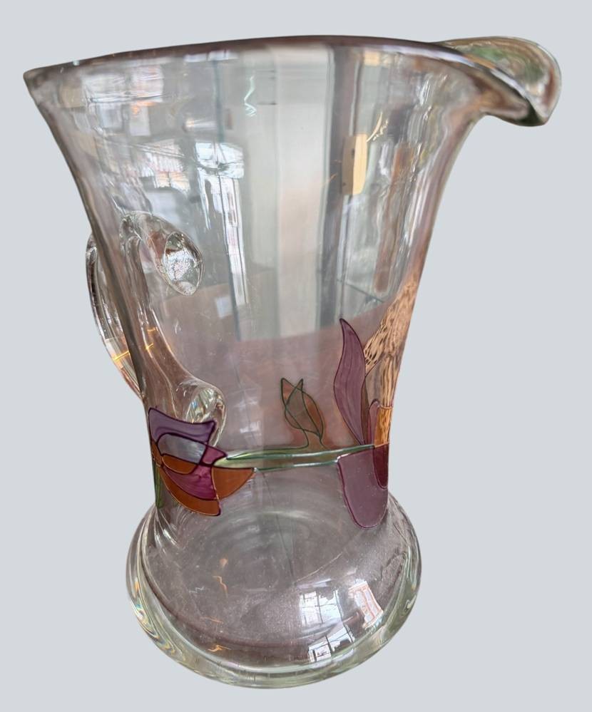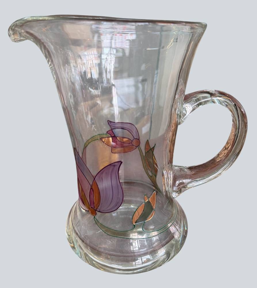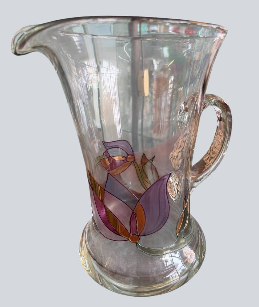 gr. Saftkrug mit Buntglas-Blumen, H-22,5 cm [1]