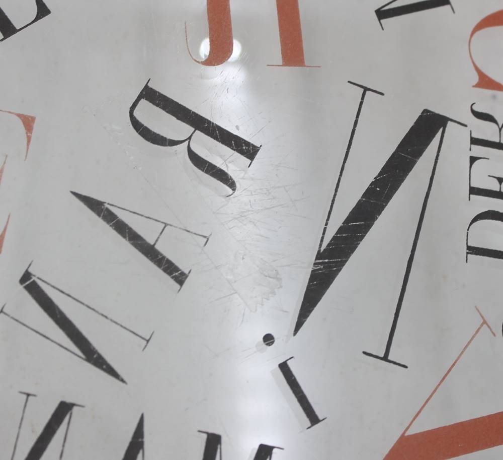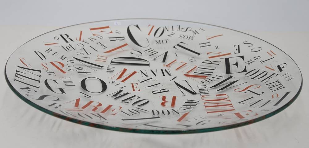 gr. Schale mit Buchstabendekor, in der Art von Ferdinand Kriwet, Gebrauchsspuren, ca. D-42cm [1]