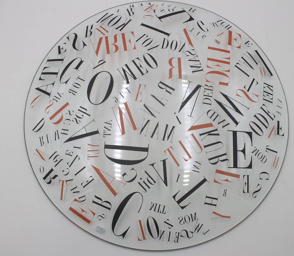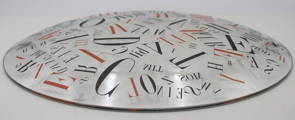 gr. Schale mit Buchstabendekor, in der Art von Ferdinand Kriwet, Gebrauchsspuren, ca. D-42cm