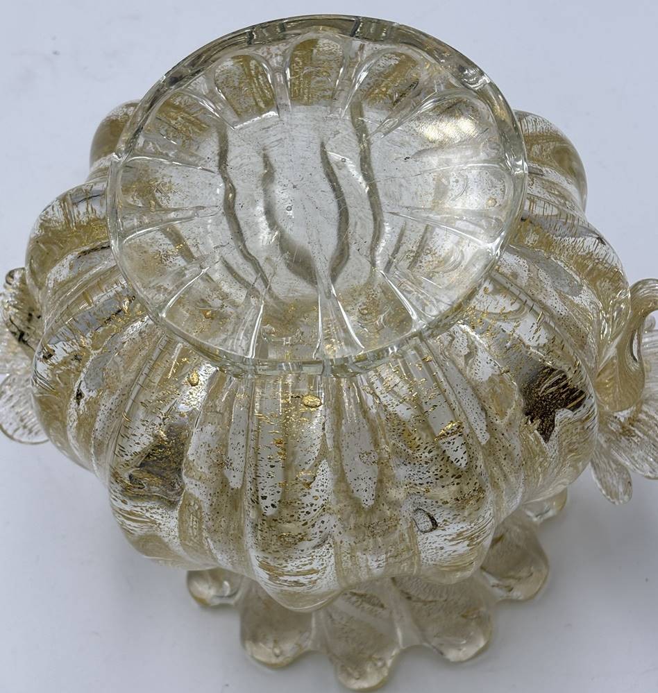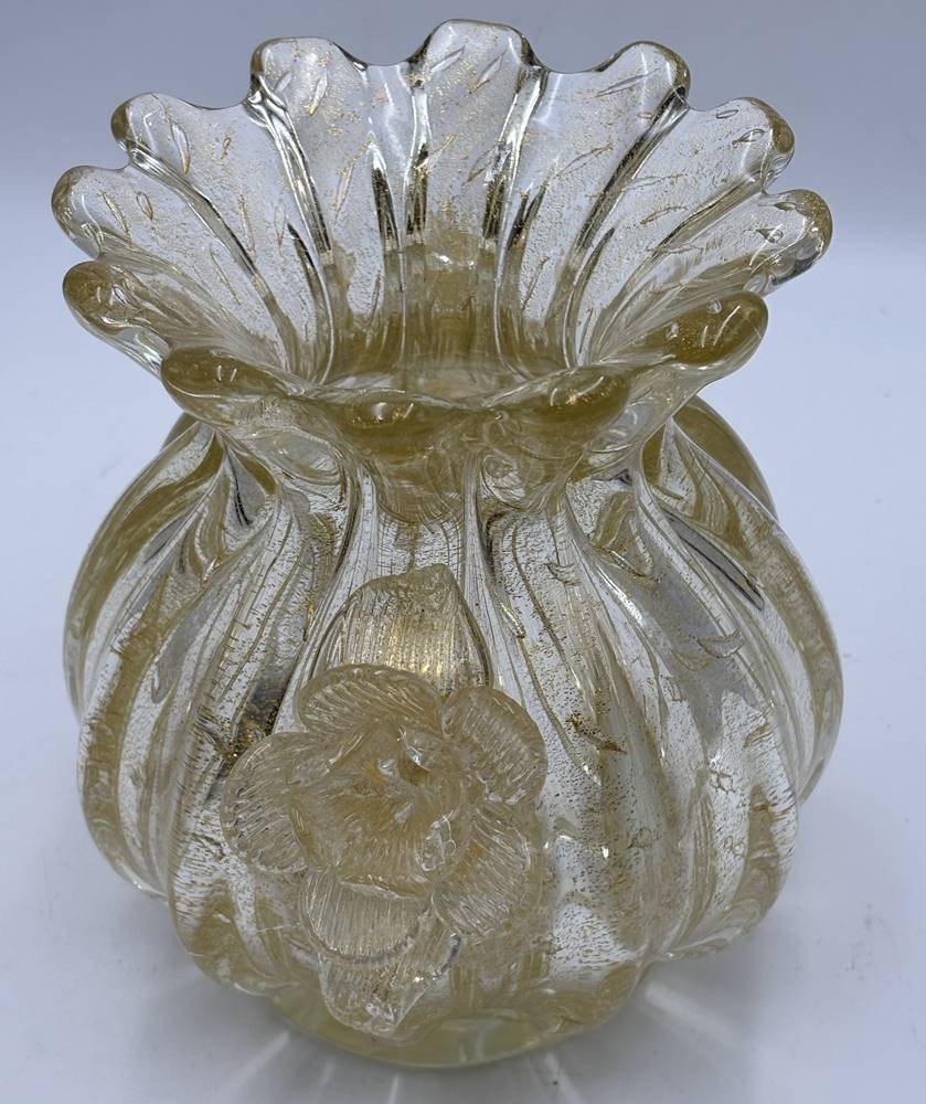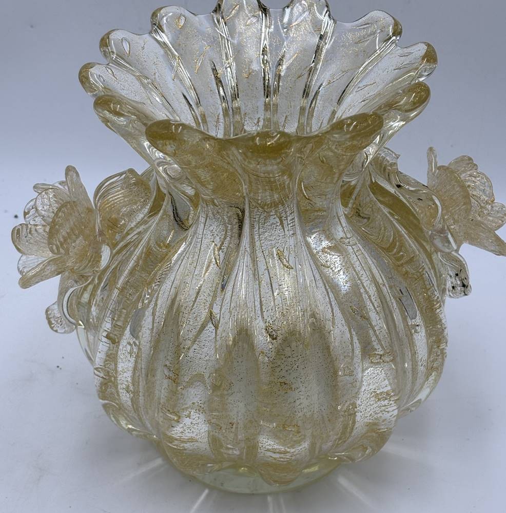 gr. Vase, Murano, Barovier&Toso, seitlich Rosenblüten, Goldflitter, H-20 cm, B-24 cm, minim. Abplatzer bei einer Blüte, [1]