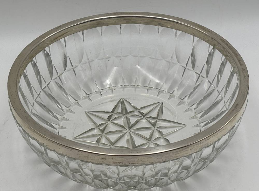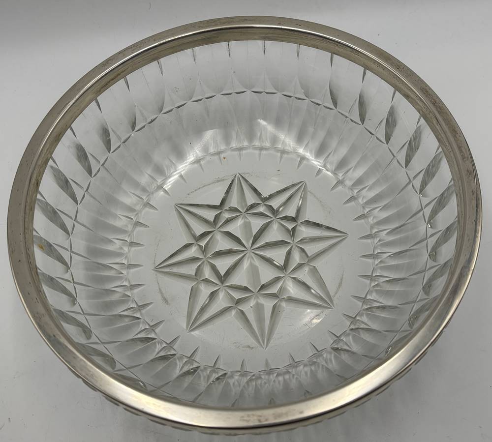 grosse Kristallschale mit Silberrand "Wilkens" -800-, H-8 cm, D-23,5 cm [1]