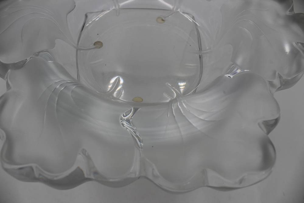 grosse, schwere Kristallschale "Lalique-France", Blattdekor, H-6 cm, D-30 cm, signiert [1]